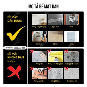 CHÚ Ý: Đối với những vật liệu có bề mặt mịn có độ bám keo cao như kính, nhựa, gạch men, kim loại, vui lòng dùng nước rửa bát pha loãng hoặc nước lau kính, bôi hoặc xịt lên bề mặt cần dán, dán đến đâu bôi đều lên đó, dán trong lúc ướt!