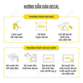 Dán và dùng khăn miết sạch nước khi nào decal phẳng là được, qua thời gian 6-12h decal sẽ tự dính chắc. Với cách này bạn có thể xịt nhiều nước thoải mái, di chuyển căn chỉnh thoải mái mà không sợ lệch. (Chú ý: không xịt nước lên vật liệu bề mặt không thích ứng với nước).
